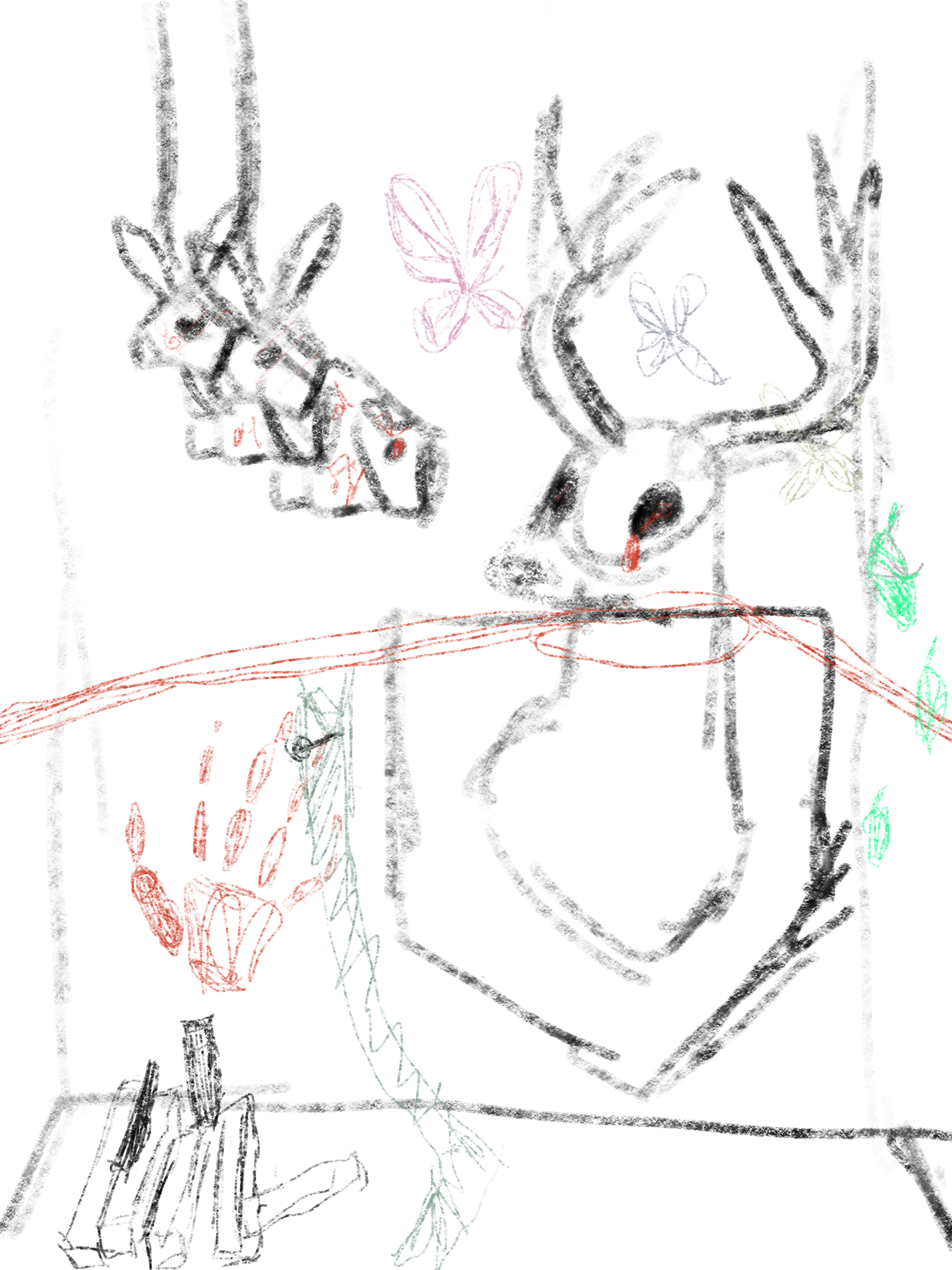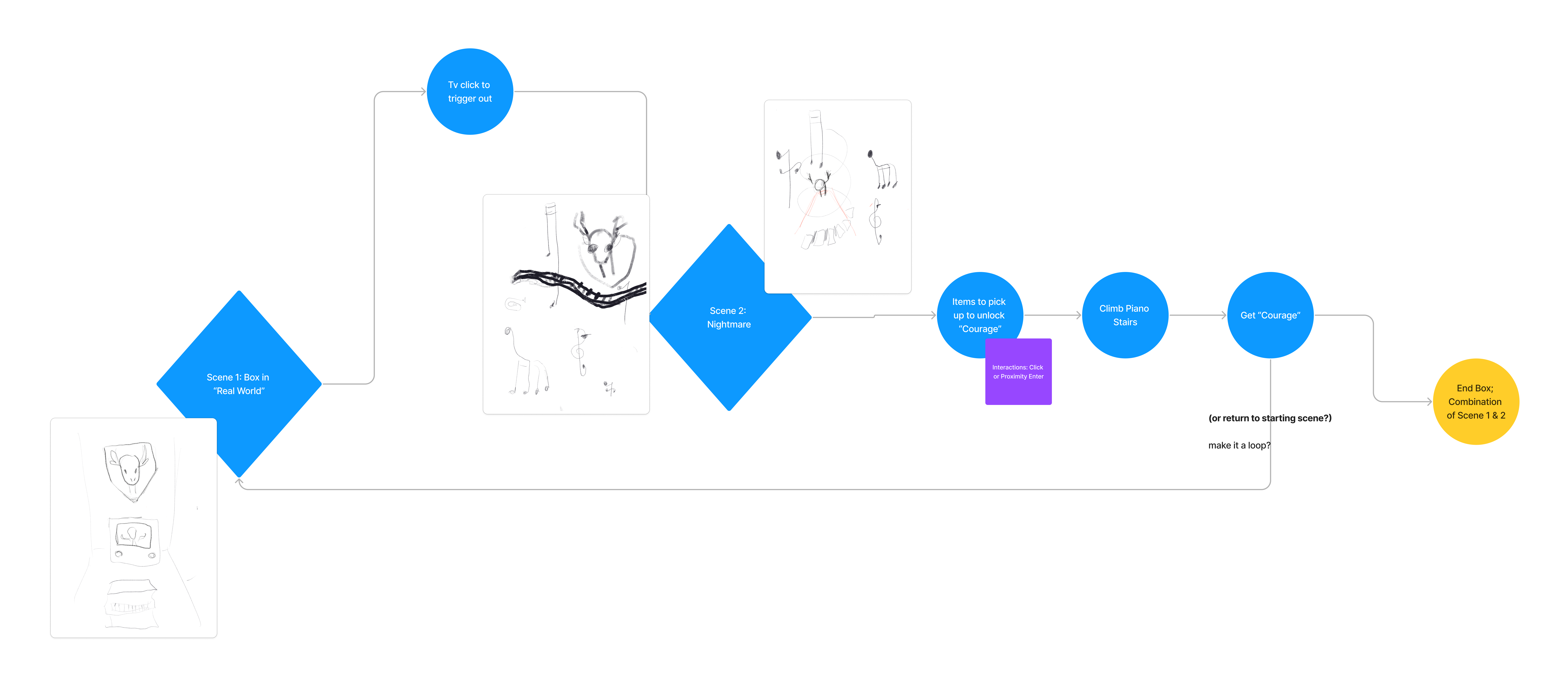 My initial idea for the Cornell box was actually based on my childhood, specifically with elements like the "piano" and the "deer." However, I wanted the project to have more of a "storyline" rather than just being an interactive experience. It ended up becoming a hybrid of the initial concept and the Courage the Cowardly Dog episode. Consequently, the project ended up taking an almost surrealist tone. I specifically wanted to play with the idea of a "TV Box" when considering what exactly a Cornell box is.